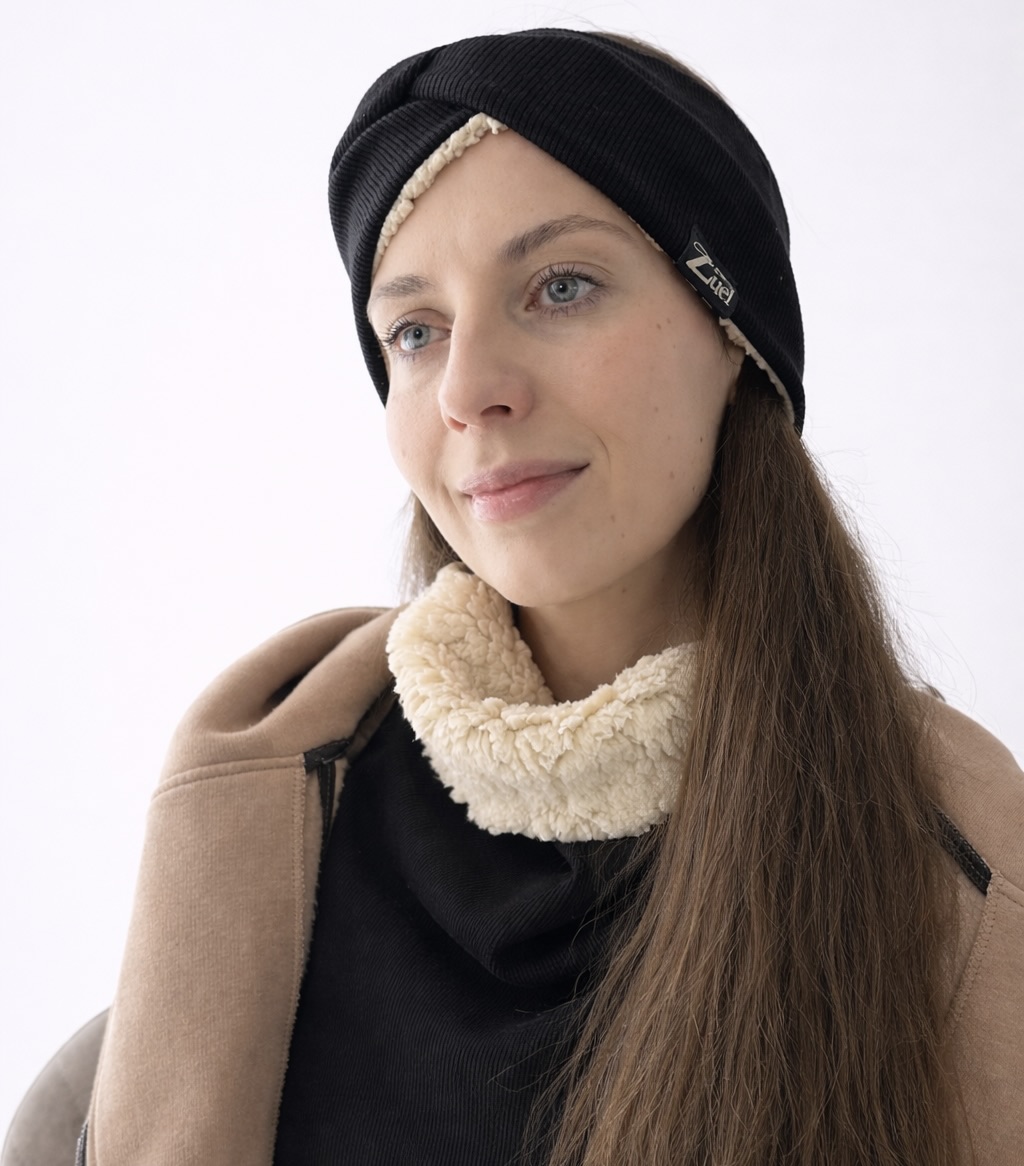 Čelenku jednoducho skombinujete s našimi dámskymi nákrčníkmi a vytvoríte hrejivý set na chladné dni.