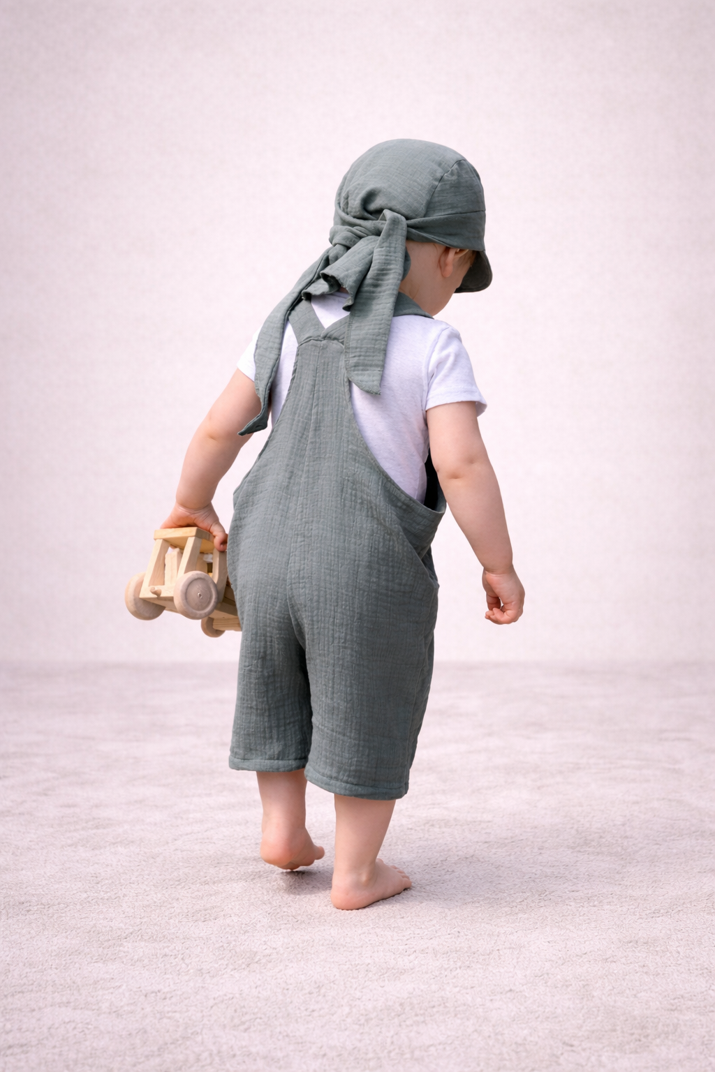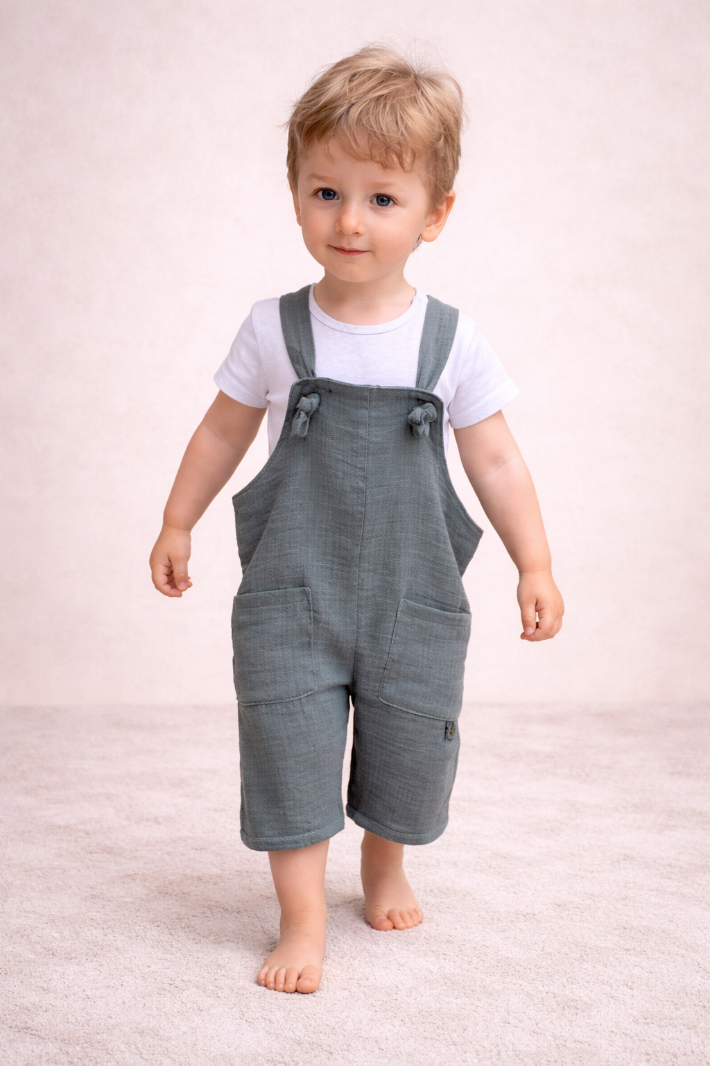 Detské mušelínové kraťasy na traky sa vyrábajú z kvalitného bavlneného mušelínu, ktorý je známy svojou jemnosťou a priedušnosťou. Materiál zostáva ľahký, mäkký a zároveň odolný aj pri opakovanom praní.