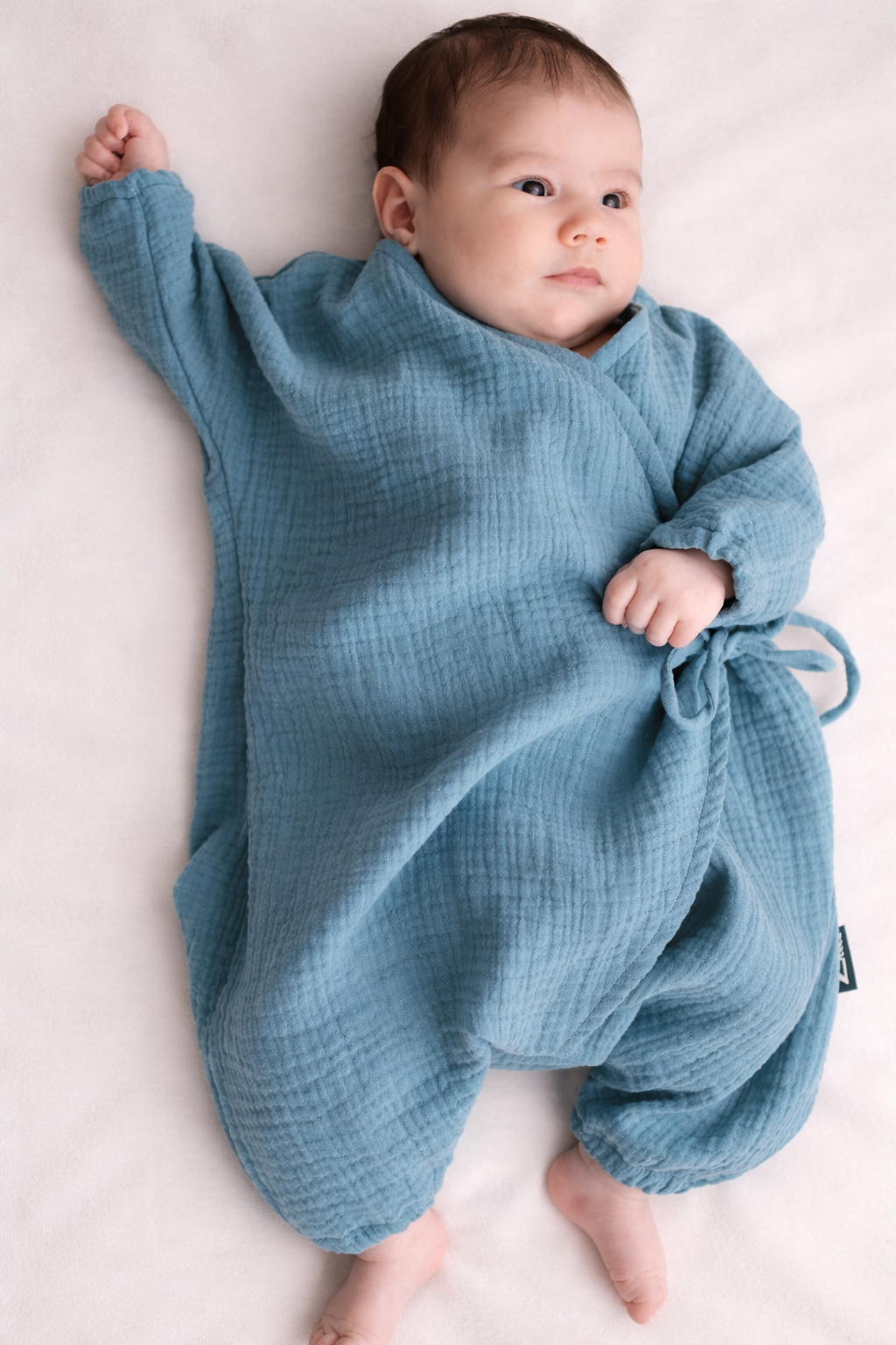 Každé kimono šijeme ručne v malej dielni na Slovensku v spolupráci s lokálnymi krajčírkami. Počas výroby kladieme dôraz na kvalitu, jemnosť spracovania a udržateľnosť. Na šitie používame 100 % bavlnený mušelín s certifikáciou OEKO-TEX® Standard 100, ktorý chráni aj tú najcitlivejšiu pokožku. Mušelínové zavinovacie kimono pre bábätká tak spája poctivé remeslo s láskavým prístupom k detským potrebám.